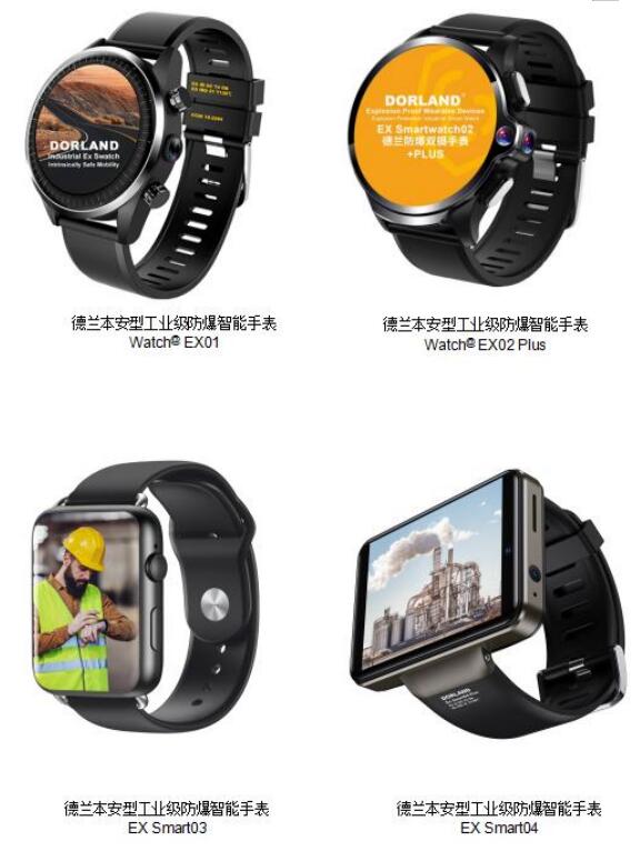 EX Smart03、EX Smart04等。整个防爆手表系列都进行了气体和粉尘的双防爆认证,配有后置传感器,可进行多种运动模式精准识别分析,心率检测,睡眠分析,运动效果评估等。手表内部配置了GPS、北斗、格拉纳斯定位等多种适合户外施工、管道巡检等功能,可以配合OA办公系统、巡检定位系统、数据采集系统的多种应用,同时支持下载更多应用,也支持客户端应用的二次开发。同时手表可插SIM卡,可使用视频、语音、二维码扫描支付、接打电话。短信提示、语音搜索等功能,这种新的免提通信形式,可以使人员在作业时操作起来更方便快捷。