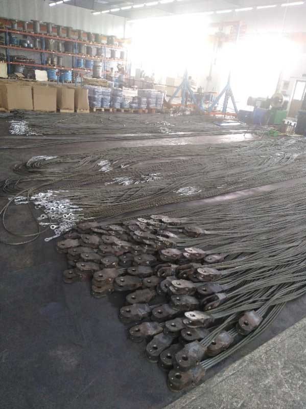 公司在6绳绳排、4绳绳排及钢压头拉索生产过程中,利用电控液压技术实现多绳自动等力,保证每个绳排的每根钢丝绳受力一致,大大增强了绳排的整体拉力。公司对钢丝绳自动切割,保证了长度精准度。公司多条生产线高度自动化、程序化,大大加快了生产效率。