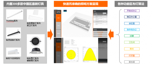 另外,朗德万斯独创的BIOLUX HCL人因照明解决方案,拥有五种照明模式,轻松满足多种情境需求,为员工和客户创造出一个健康的光照环境和良好的工作氛围。例如,在会议室集思广益时,“Create”模式可以帮助参会者打开思路,更好的进行头脑风暴;在向客户介绍展示相关方案时,可以选择“Focus”模式,以营造更加精准集中的灯光配比,从而最大限度地提高客户的注意力。朗德万斯开发了LIGHT&SPACE设计APP,通过科学的照明设计,选用绿色、环保、安全、高效、性能稳定的照明产品,改善提高人们工作、学习、生活质量。