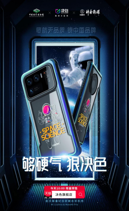 此前,为庆祝中国航天事业事业迈入新阶段,决色与中国科学技术馆、中国航天神州传媒正式达成合作,并将在5月发布“致敬航天品质”联名纪念款手机壳。