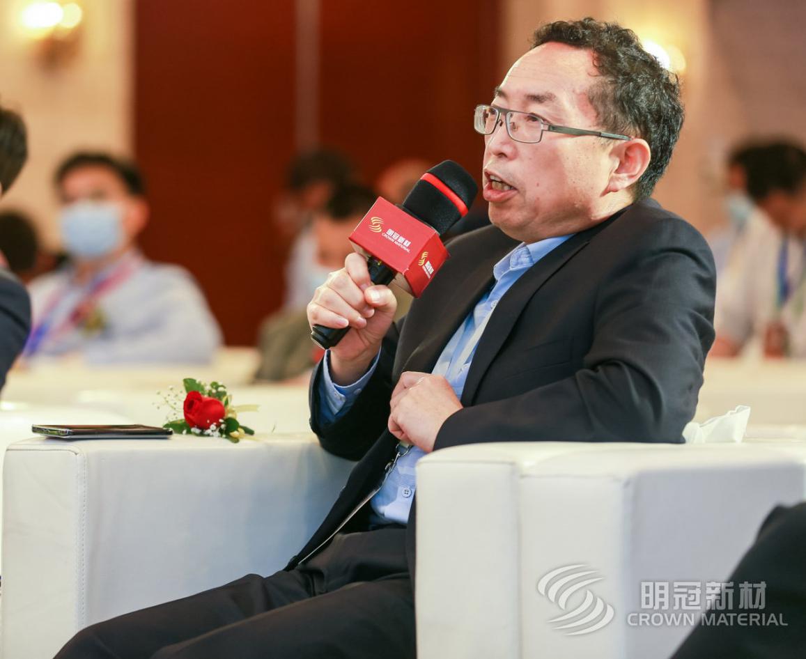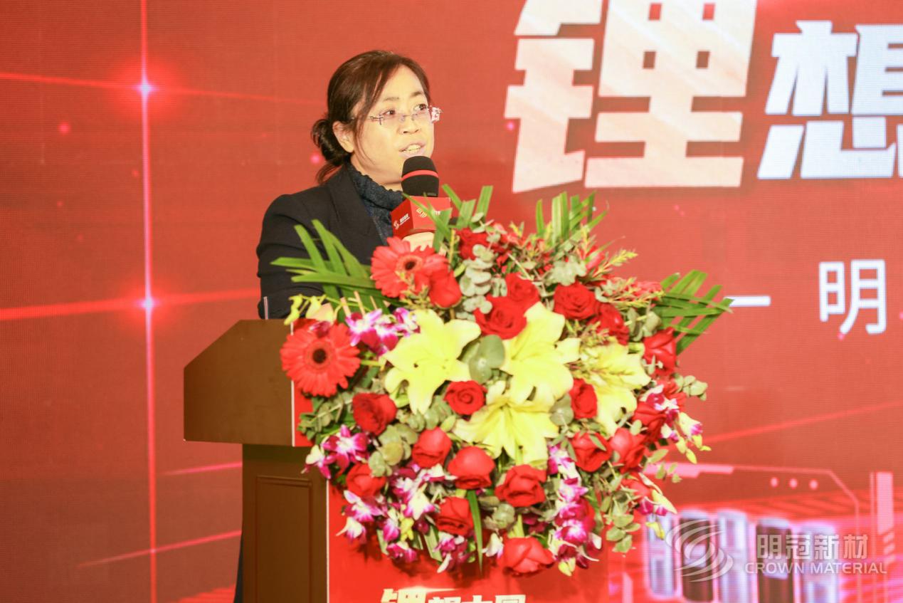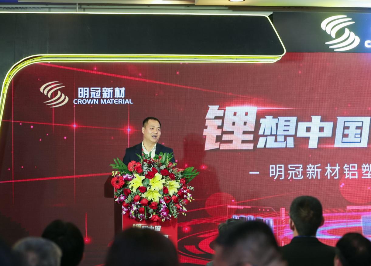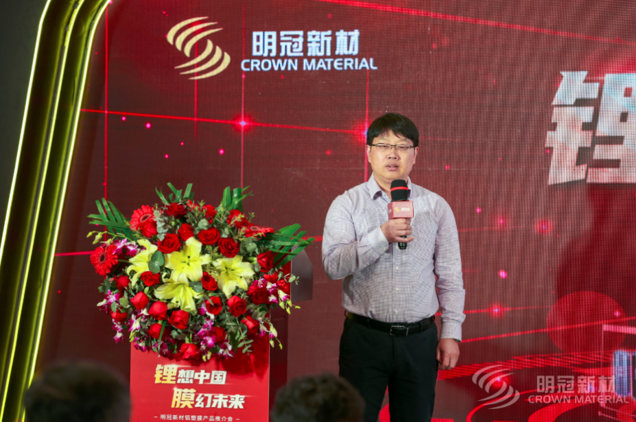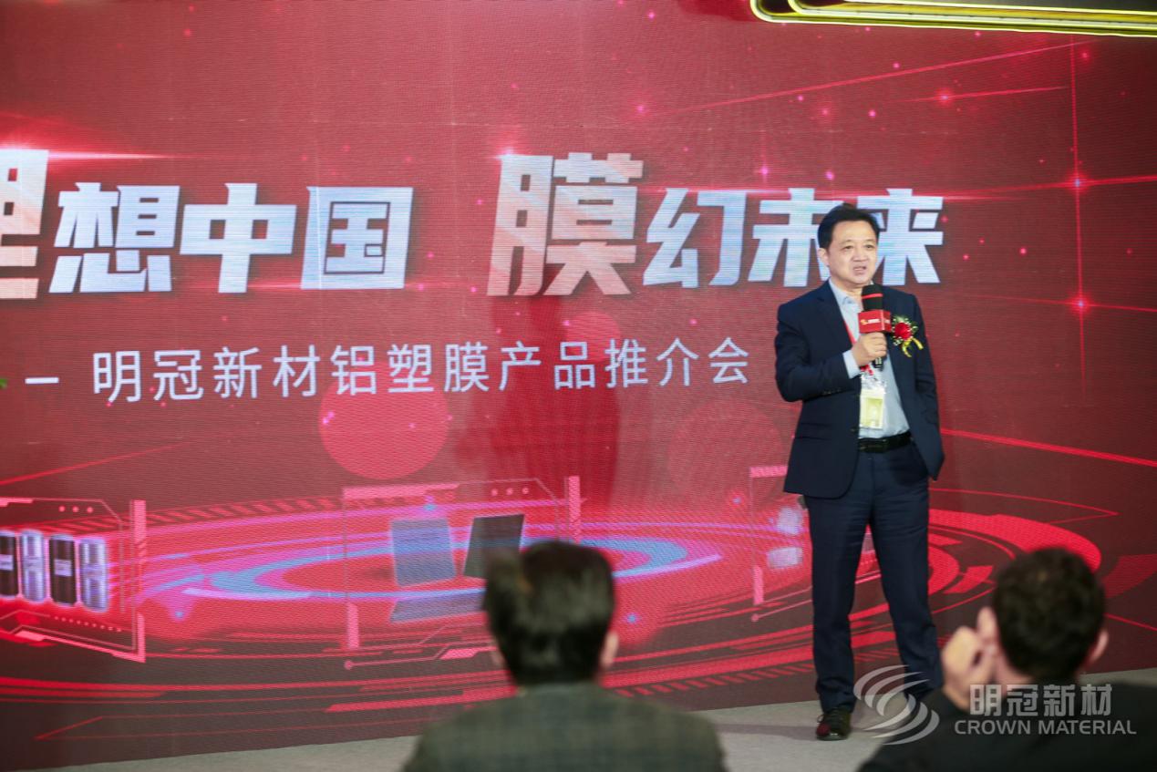 图为明冠新材董事长兼总经理闫洪嘉阐释明冠铝塑膜战略
