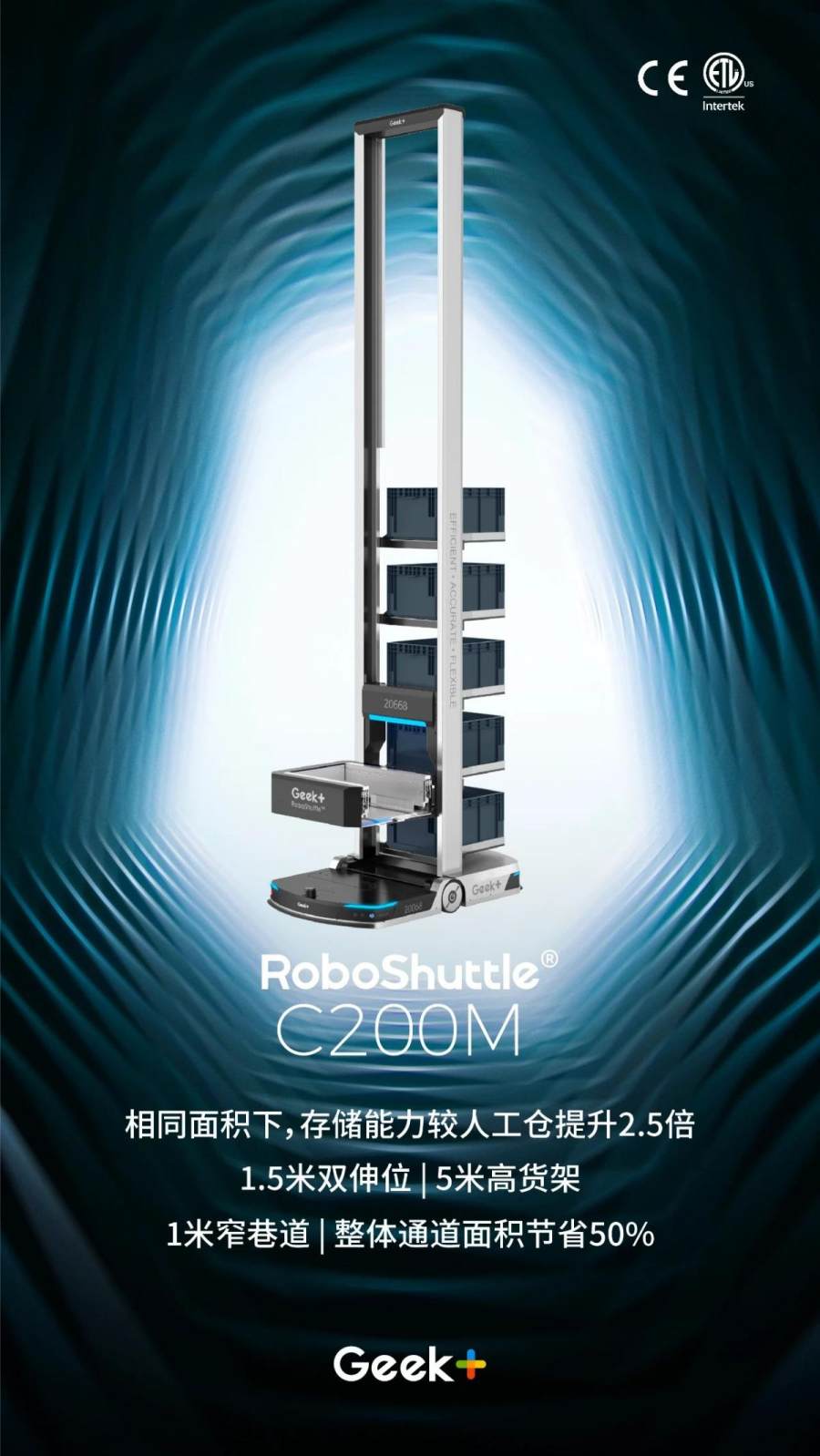 全球AMR引领者极智嘉(Geek+)今日宣布,其双伸位货箱到人拣选机器人C200M已通过全球权威认证机构Intertek的严格测试与评估,成功获得多料箱机器人领域的全球首张CE全指令证书。至此,极智嘉的C200S和C200M货箱到人产品分别创造了全球单/多料箱机器人的首个CE认证里程碑,刷新了行业品质新高度。